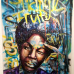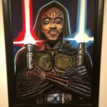 “Gray Jedi Master Tupac” by Joseph R. Wheeler III (Mixed Media on illustration board 2016) “When I discovered that Tupac Shakur was selected and had auditioned for George Lucas to be a Jedi in the Star Wars pantheon, it had an amazing effect on my imagination. I thought, ‘Where we he be now had he continued his journy in this dimension?’ He would be in his 40s. So what type of actor would he be by now? What type of Emcee? What type of political influence would he possess with a with a seasoned extension of his journey? So looking at the dualitities of Tupac with a level of self-smatery, someone with a focus on balance, I said how beautiful would it be to see him as a ‘gray Jedi.’ Gray Jedi is actual Star Wars canon to describe Jedi who do not claim the Jedi Coucil dogma nor that of the Sith. They have a personalized/individual Jedi status. I have depicted Tupac as a powerful Gray Jedi Master. Rest in power, Pac.”