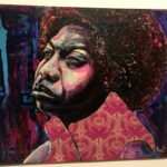 “The Nina Simone Illustration” by Dan Lish (Ink and Digital, NFS) “The Nina Simone illustration was inspired by her song ‘Funkier than a Mostquito’s Tweeter’ – for me, a B-Boy Classic. Her face being the main focal point, this gave me a chance to explore patterns and the depiction of energy around her and the Mosquito man gluggling from buckets of crud. The piano depicts her inner-struggles with the effects of Bipolar, the social constructs at the time, the music business and her personal relationships.”